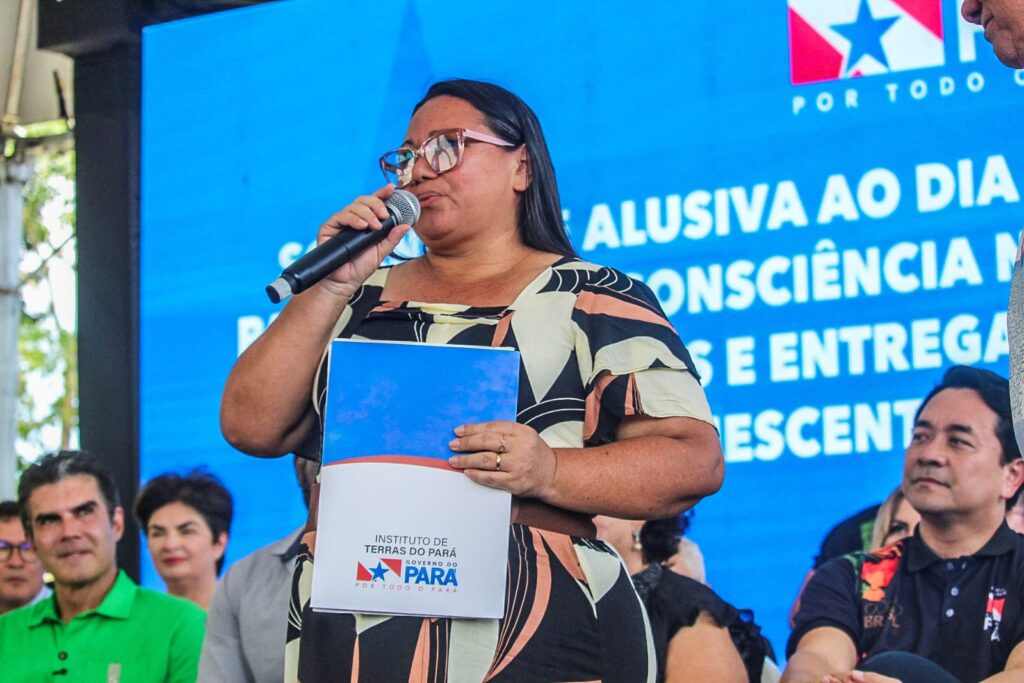 Em alusão ao Dia Nacional de Zumbi dos Palmares e da Consciência Negra, o Governo do Pará realizou, nesta segunda-feira (17/11), uma solenidade em homenagem à resistência e à luta histórica do povo quilombola. Durante o evento, foram entregues 12 novos títulos de territórios quilombolas, beneficiando comunidades localizadas em Barcarena, Baião, Bagre, Castanhal, Mocajuba, Oeiras do Pará, Ourém, Santa Isabel do Pará, Tracuateua e Tomé-Açu.